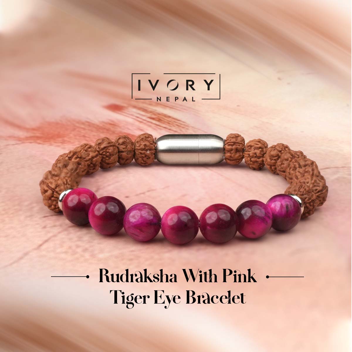 If you’re facing any of these challenges, the Rudraksha x Pink Tiger Eye Bracelet may be what you need: