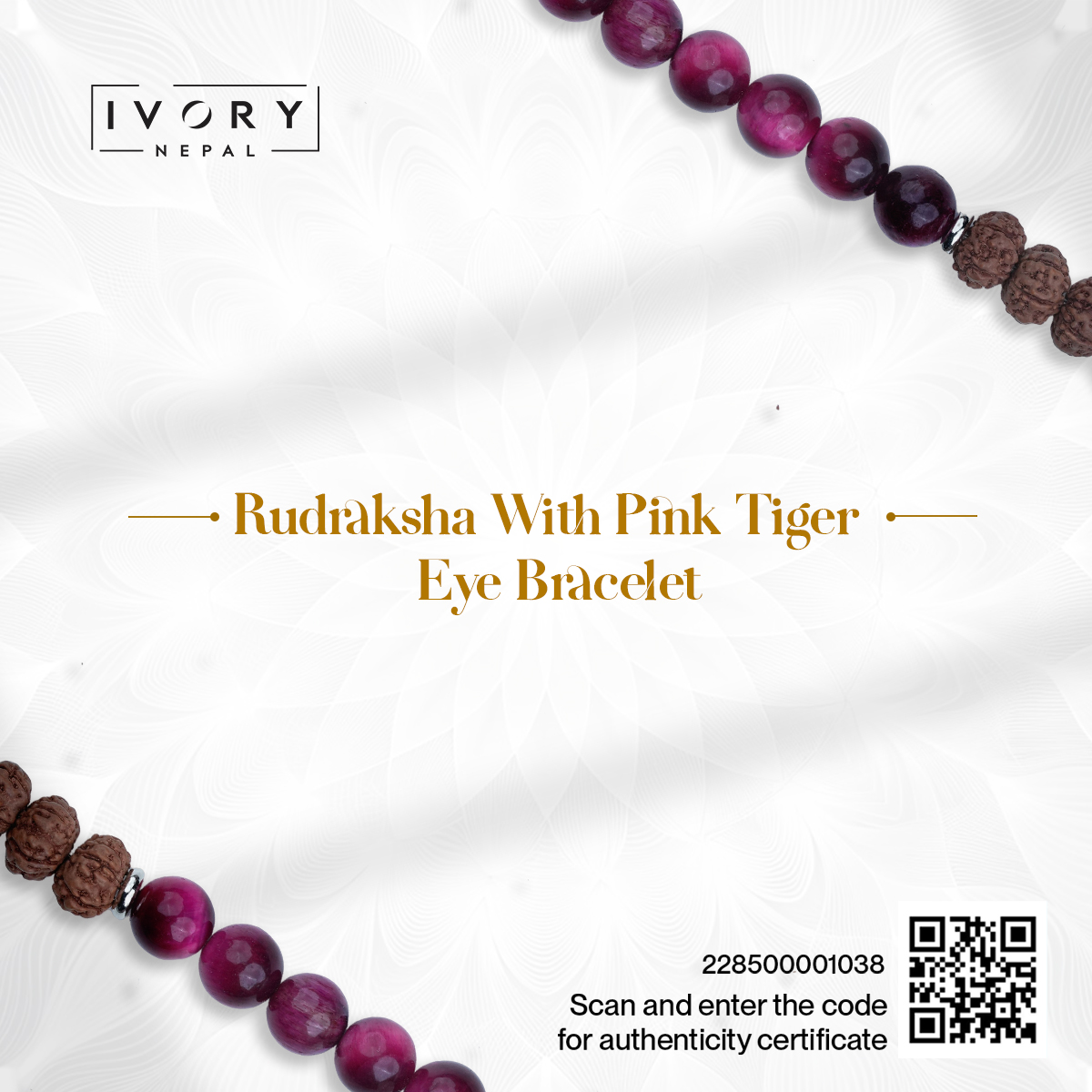 A bracelet that brings clarity to the mind and calm to the heart—designed with Rudraksha beads and Pink Tiger Eye stones.