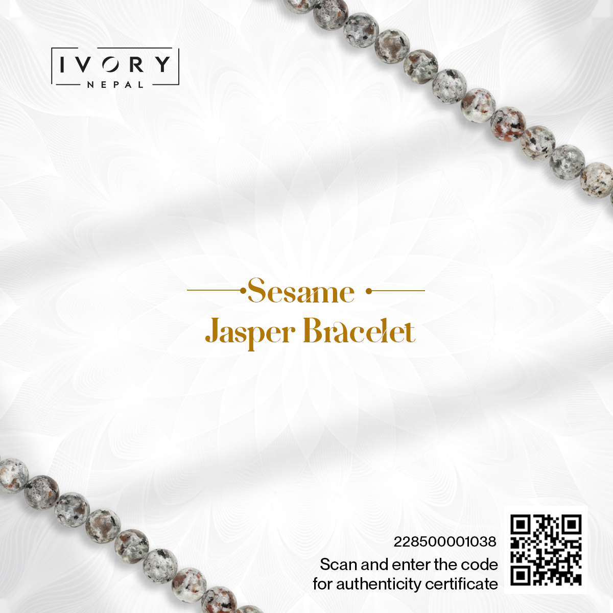 Sesame Jasper, with its soft greys and dark specks, is shaped by contrast. Light meets shadow. Stillness meets strength. Worn by those who need their thoughts to slow, their feet to stay firm, and their mind to stop racing ahead.